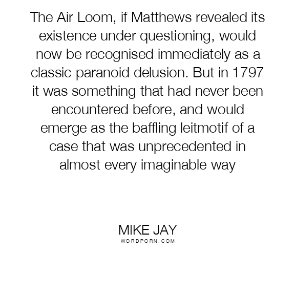 The Air Loom, if Matthews revealed its existence under questioning, would now be recognised immediately as a classic paranoid delusion. But in 1797 it was something that had never been encountered before, and would emerge as the baffling leitmotif of a case that was unprecedented in almost every imaginable way