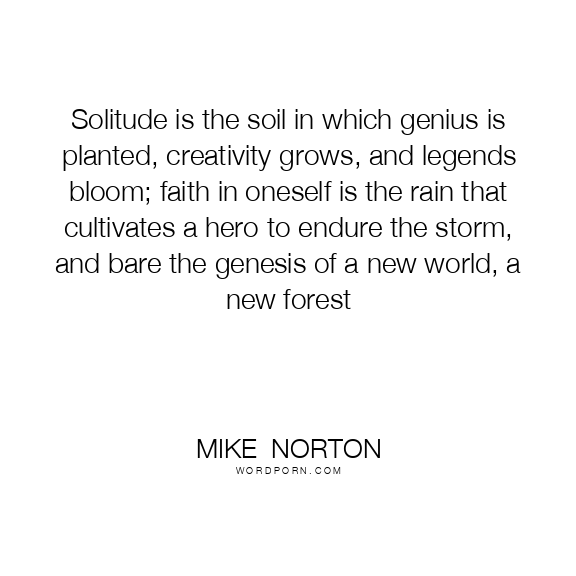 Solitude is the soil in which genius is planted, creativity grows, and legends bloom; faith in oneself is the rain that cultivates a hero to endure the storm, and bare the genesis of a new world, a new forest