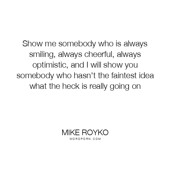 Show me somebody who is always smiling, always cheerful, always optimistic, and I will show you somebody who hasn't the faintest idea what the heck is really going on