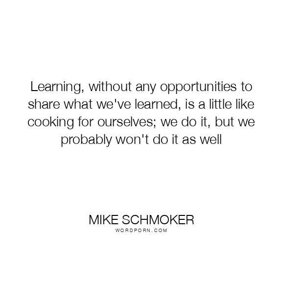 Learning, without any opportunities to share what we've learned, is a little like cooking for ourselves; we do it, but we probably won't do it as well