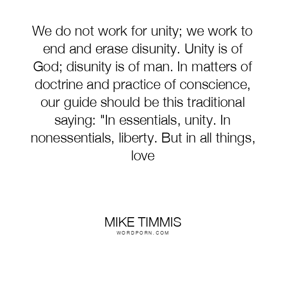 We do not work for unity; we work to end and erase disunity. Unity is of God; disunity is of man. In matters of doctrine and practice of conscience, our guide should be this traditional saying: "In essentials, unity. In nonessentials, liberty. But in all things, love