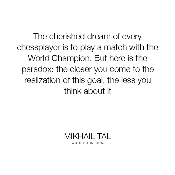 The cherished dream of every chessplayer is to play a match with the World Champion. But here is the paradox: the closer you come to the realization of this goal, the less you think about it