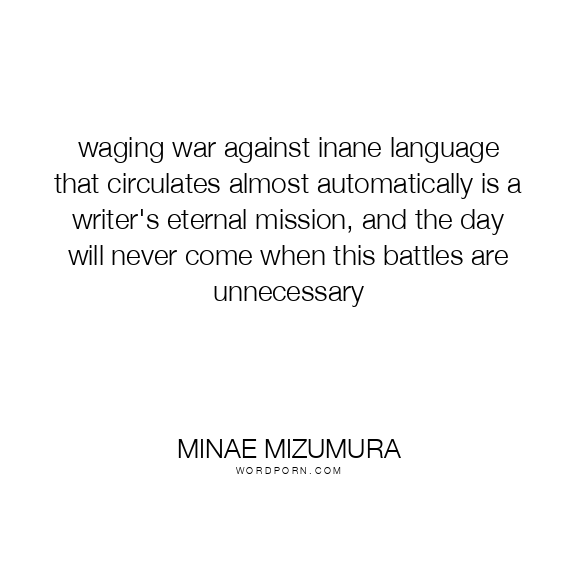 Minae Mizumura quote. waging war against inane language that circulates almost automatically is a writer's eternal mission, and the day will never come when this battles are unnecessary