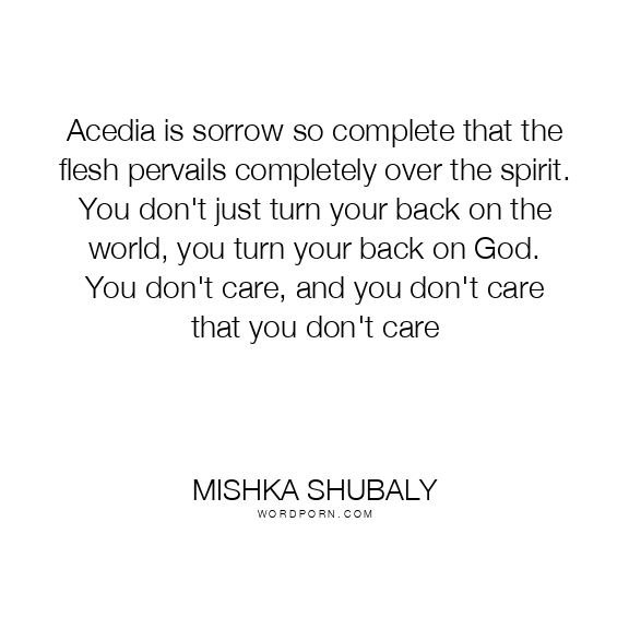 Acedia is sorrow so complete that the flesh pervails completely over the spirit. You don't just turn your back on the world, you turn your back on God. You don't care, and you don't care that you don't care