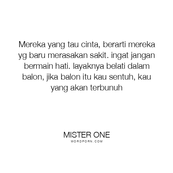Mereka yang tau cinta, berarti mereka yg baru merasakan sakit. ingat jangan bermain hati. layaknya belati dalam balon, jika balon itu kau sentuh, kau yang akan terbunuh