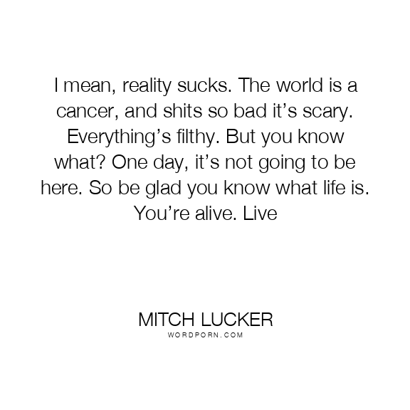 I mean, reality sucks. The world is a cancer, and shits so bad it’s scary. Everything’s filthy. But you know what? One day, it’s not going to be here. So be glad you know what life is. You’re alive. Live