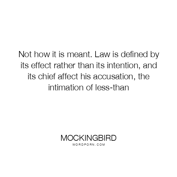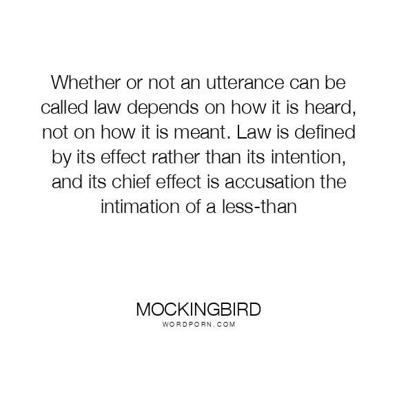 Whether or not an utterance can be called law depends on how it is heard, not on how it is meant. Law is defined by its effect rather than its intention, and its chief effect is accusation the intimation of a less-than