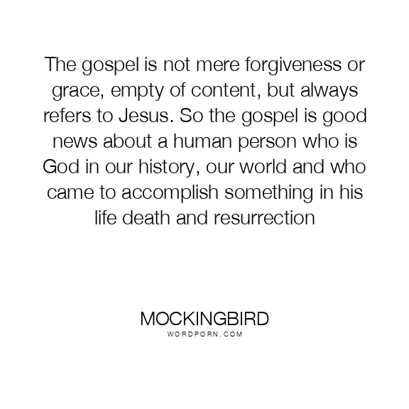 The gospel is not mere forgiveness or grace, empty of content, but always refers to Jesus. So the gospel is good news about a human person who is God in our history, our world and who came to accomplish something in his life death and resurrection
