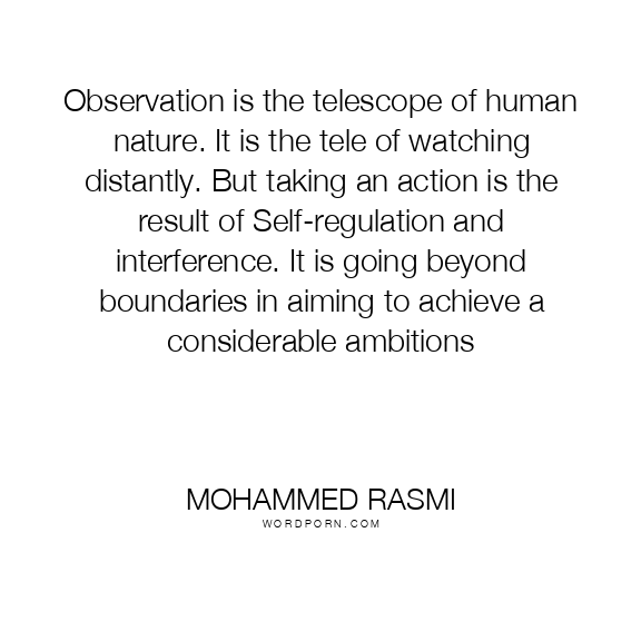 Observation is the telescope of human nature. It is the tele of watching distantly. But taking an action is the result of Self-regulation and interference. It is going beyond boundaries in aiming to achieve a considerable ambitions