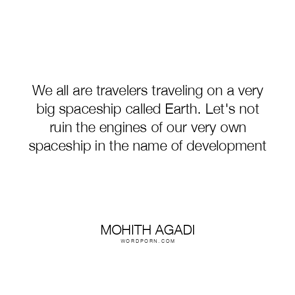 We all are travelers traveling on a very big spaceship called Earth. Let's not ruin the engines of our very own spaceship in the name of development