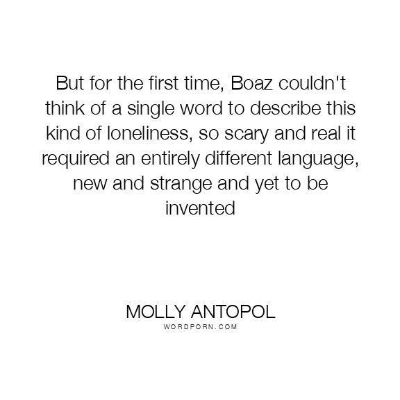 But for the first time, Boaz couldn't think of a single word to describe this kind of loneliness, so scary and real it required an entirely different language, new and strange and yet to be invented