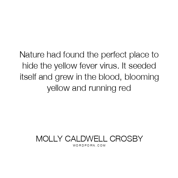 Nature had found the perfect place to hide the yellow fever virus. It seeded itself and grew in the blood, blooming yellow and running red