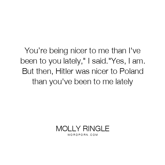 You’re being nicer to me than I've been to you lately," I said."Yes, I am. But then, Hitler was nicer to Poland than you've been to me lately