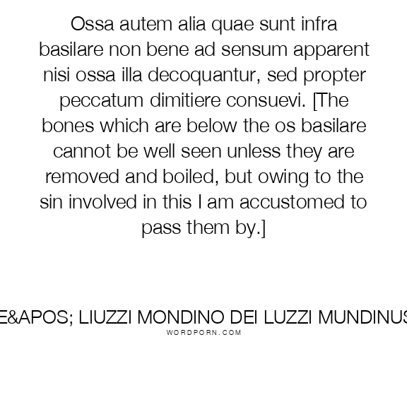 Ossa autem alia quae sunt infra basilare non bene ad sensum apparent nisi ossa illa decoquantur, sed propter peccatum dimitiere consuevi. [The bones which are below the os basilare cannot be well seen unless they are removed and boiled, but owing to the sin involved in this I am accustomed to pass them by.]