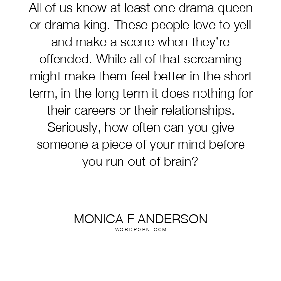 All of us know at least one drama queen or drama king. These people love to yell and make a scene when they’re offended. While all of that screaming might make them feel better in the short term, in the long term it does nothing for their careers or their relationships. Seriously, how often can you give someone a piece of your mind before you run out of brain?