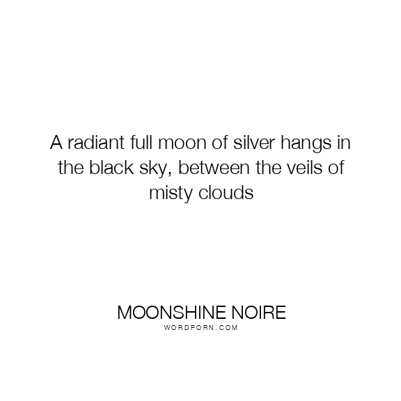 A radiant full moon of silver hangs in the black sky, between the veils of misty clouds