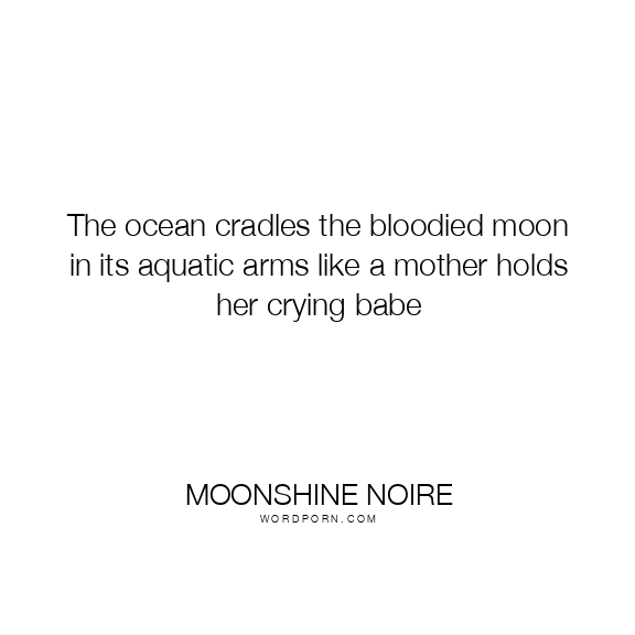 The ocean cradles the bloodied moon in its aquatic arms like a mother holds her crying babe