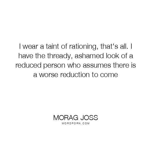 Copy Image I wear a taint of rationing, that's all. I have the thready, ashamed look of a reduced person who assumes there is a worse reduction to come Moms Typewriter A A SAVE THIS IMAGE