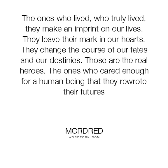 The ones who lived, who truly lived, they make an imprint on our lives. They leave their mark in our hearts. They change the course of our fates and our destinies. Those are the real heroes. The ones who cared enough for a human being that they rewrote their futures