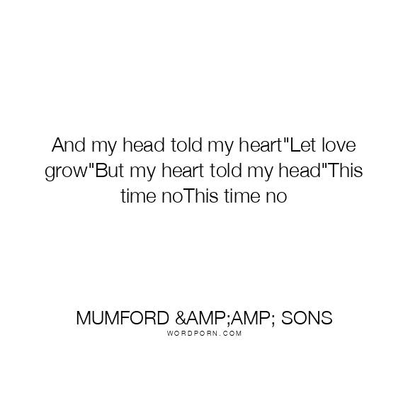 And my head told my heart"Let love grow"But my heart told my head"This time noThis time no