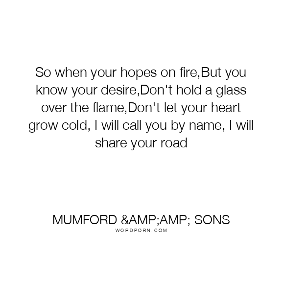 So when your hopes on fire,But you know your desire,Don't hold a glass over the flame,Don't let your heart grow cold, I will call you by name, I will share your road