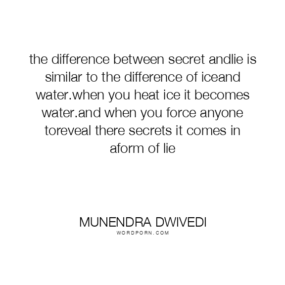 the difference between secret andlie is similar to the difference of iceand water.when you heat ice it becomes water.and when you force anyone toreveal there secrets it comes in aform of lie
