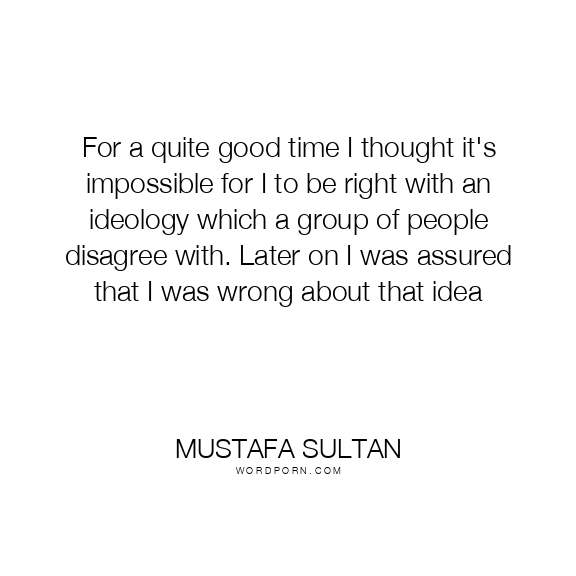 For a quite good time I thought it's impossible for I to be right with an ideology which a group of people disagree with. Later on I was assured that I was wrong about that idea