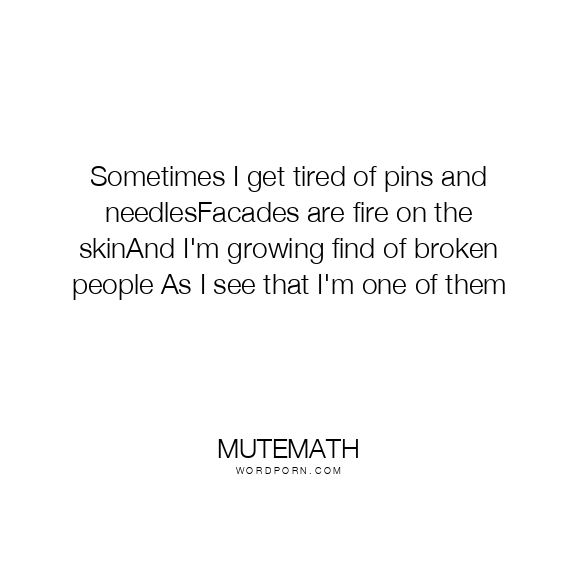 Copy Image Sometimes I get tired of pins and needlesFacades are fire on the skinAnd I'm growing find of broken people As I see that I'm one of them Moms Typewriter A A SAVE THIS IMAGE