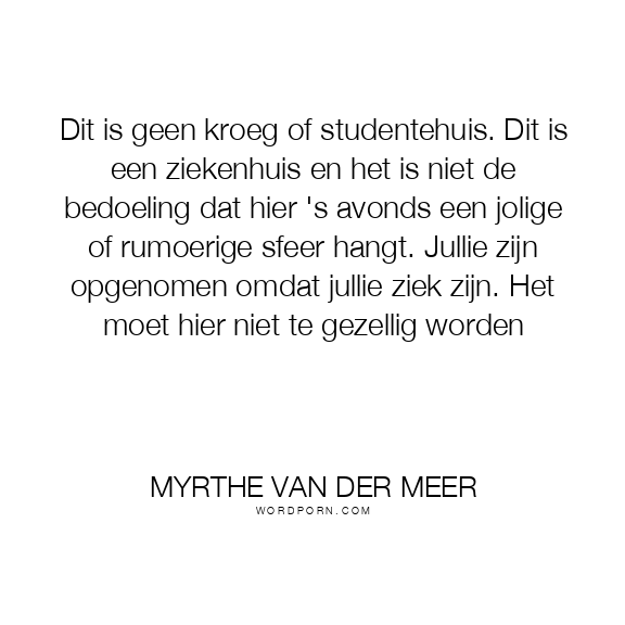 Dit is geen kroeg of studentehuis. Dit is een ziekenhuis en het is niet de bedoeling dat hier 's avonds een jolige of rumoerige sfeer hangt. Jullie zijn opgenomen omdat jullie ziek zijn. Het moet hier niet te gezellig worden
