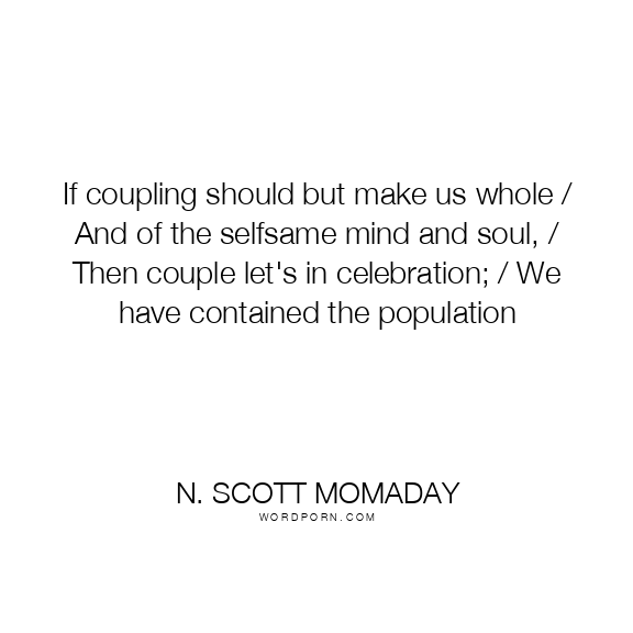 If coupling should but make us whole / And of the selfsame mind and soul, / Then couple let's in celebration; / We have contained the population