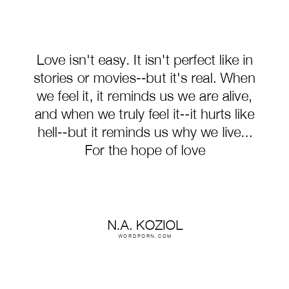 Love isn't easy. It isn't perfect like in stories or movies--but it's real. When we feel it, it reminds us we are alive, and when we truly feel it--it hurts like hell--but it reminds us why we live... For the hope of love