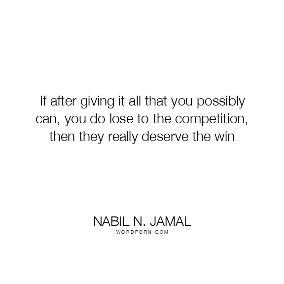 If after giving it all that you possibly can, you do lose to the competition, then they really deserve the win
