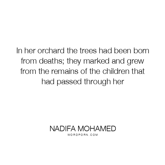 In her orchard the trees had been born from deaths; they marked and grew from the remains of the children that had passed through her