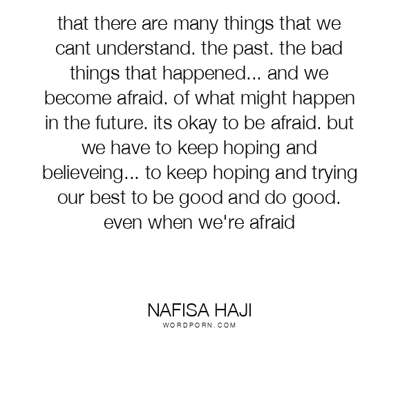 that there are many things that we cant understand. the past. the bad things that happened... and we become afraid. of what might happen in the future. its okay to be afraid. but we have to keep hoping and believeing... to keep hoping and trying our best to be good and do good. even when we're afraid