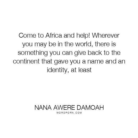 Come to Africa and help! Wherever you may be in the world, there is something you can give back to the continent that gave you a name and an identity, at least