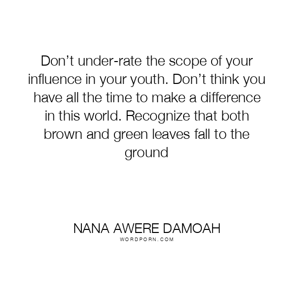 Don’t under-rate the scope of your influence in your youth. Don’t think you have all the time to make a difference in this world. Recognize that both brown and green leaves fall to the ground