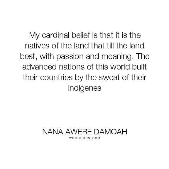 My cardinal belief is that it is the natives of the land that till the land best, with passion and meaning. The advanced nations of this world built their countries by the sweat of their indigenes