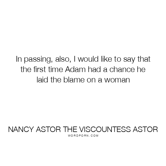 Nancy Astor the Viscountess Astor quote. In passing, also, I would like to say that the first time Adam had a chance he laid the blame on a woman