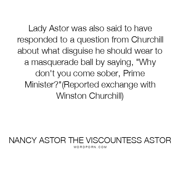 Lady Astor was also said to have responded to a question from Churchill about what disguise he should wear to a masquerade ball by saying, "Why don't you come sober, Prime Minister?"(Reported exchange with Winston Churchill)