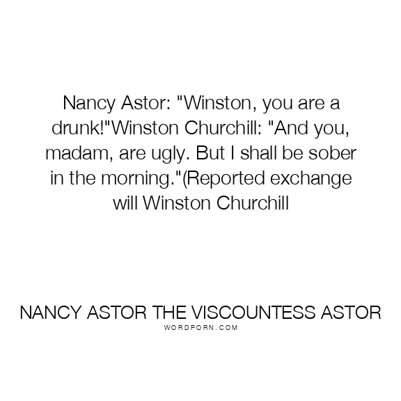 Nancy Astor: "Winston, you are a drunk!"Winston Churchill: "And you, madam, are ugly. But I shall be sober in the morning."(Reported exchange will Winston Churchill