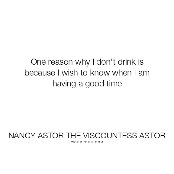 Nancy Astor the Viscountess Astor quote. One reason why I don't drink is because I wish to know when I am having a good time