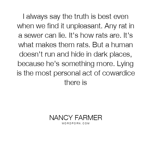 I always say the truth is best even when we find it unpleasant. Any rat in a sewer can lie. It's how rats are. It's what makes them rats. But a human doesn't run and hide in dark places, because he's something more. Lying is the most personal act of cowardice there is