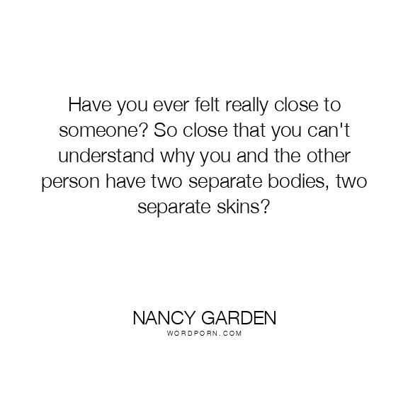 Have you ever felt really close to someone? So close that you can't understand why you and the other person have two separate bodies, two separate skins?