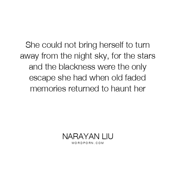 She could not bring herself to turn away from the night sky, for the stars and the blackness were the only escape she had when old faded memories returned to haunt her