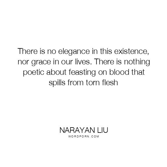 There is no elegance in this existence, nor grace in our lives. There is nothing poetic about feasting on blood that spills from torn flesh