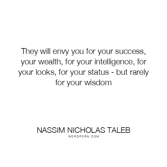 They will envy you for your success, your wealth, for your intelligence, for your looks, for your status - but rarely for your wisdom