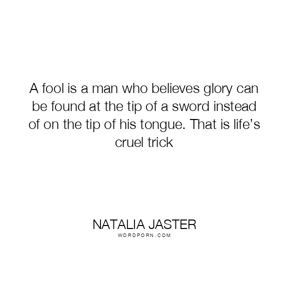 A fool is a man who believes glory can be found at the tip of a sword instead of on the tip of his tongue. That is life’s cruel trick