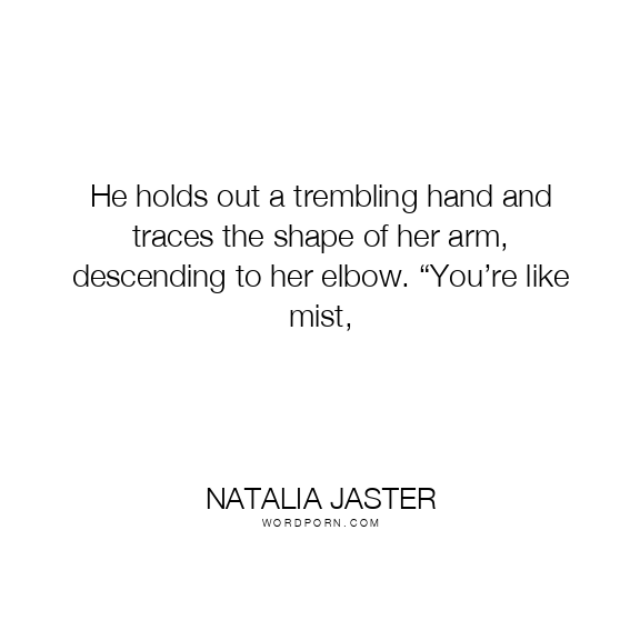 He holds out a trembling hand and traces the shape of her arm, descending to her elbow. “You’re like mist,