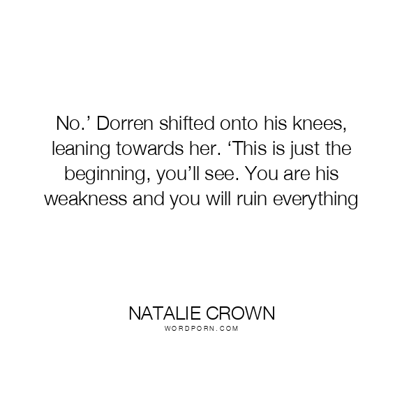No.’ Dorren shifted onto his knees, leaning towards her. ‘This is just the beginning, you’ll see. You are his weakness and you will ruin everything
