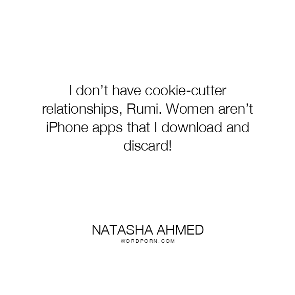 Copy Image I don’t have cookie-cutter relationships, Rumi. Women aren’t iPhone apps that I download and discard! Moms Typewriter A A SAVE THIS IMAGE